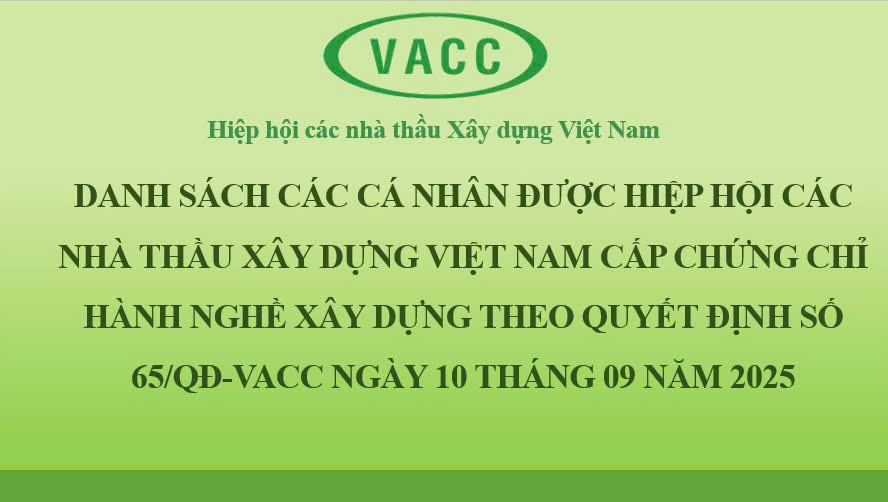 DANH SÁCH CÁC CÁ NHÂN ĐƯỢC HIỆP HỘI CÁC NHÀ THẦU XÂY DỰNG VIỆT NAM CẤP CHỨNG CHỈ HÀNH NGHỀ XÂY DỰNG THEO QUYẾT ĐỊNH SỐ 65/QĐ-VACC NGÀY 10 THÁNG 09 NĂM 2025