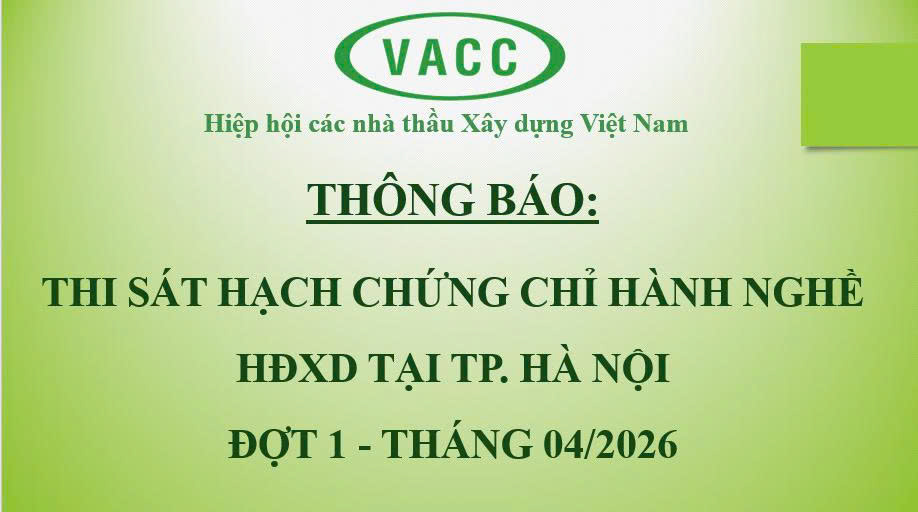 THÔNG BÁO THI SÁT HẠCH CHỨNG CHỈ HÀNH NGHỀ HĐXD TẠI HÀ NỘI ĐỢT 1 – THÁNG 02/2026