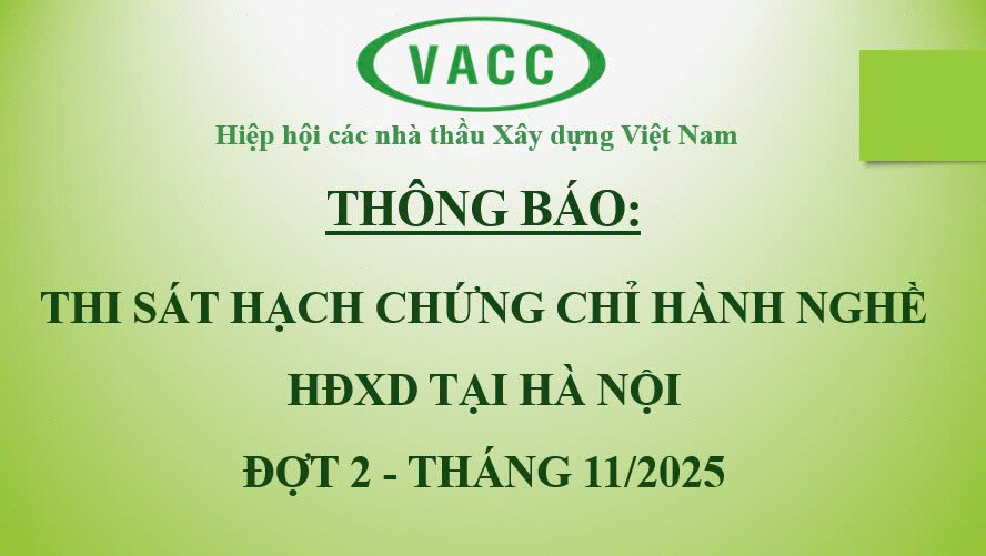 THÔNG BÁO THI SÁT HẠCH CHỨNG CHỈ HÀNH NGHỀ HĐXD TẠI HÀ NỘI ĐỢT 2 – THÁNG 11/2025
